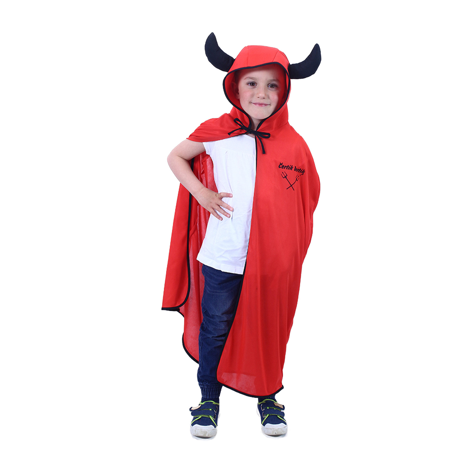 Roztomilý čertík Bertík je ideální kostým pro karneval, Mikuláše nebo dětské párty! Plášť je červeno-černý, s kapucí a přišitými rohy, délka cca 104 cm. Univerzální velikost vhodná pro děti od 3 do 10 let (104–146 cm). Snadno se obléká a vaše dítě bude středem pozornosti!