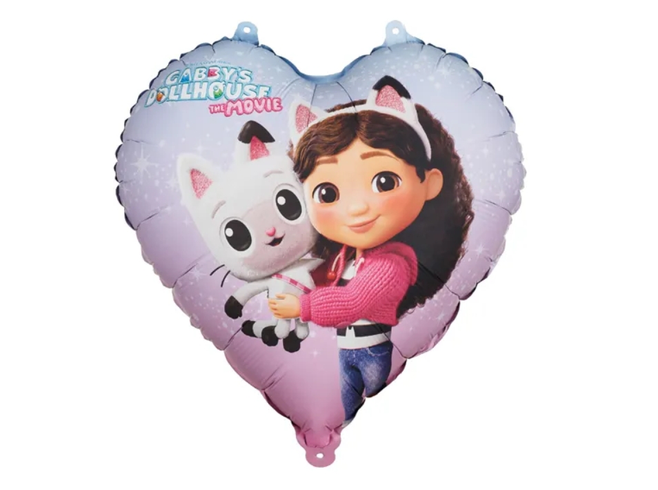 Fólie Gabbyina domečku pro panenky ve tvaru srdce, směs barev. Rozměry před inflací přibližně 45 cm (18''), rozměry po inflaci přibližně 35 cm (14''). Na nafukování vzduchem a heliem. Sada obsahuje brčko.