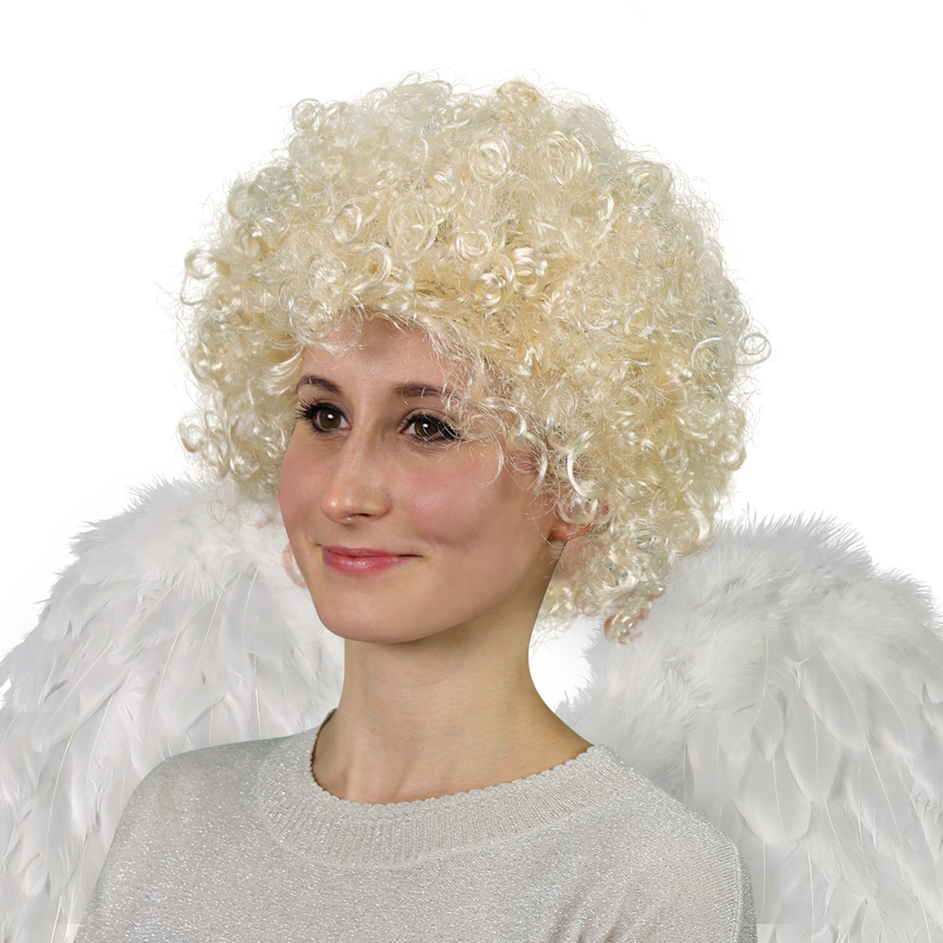 Tato krátká karnevalová paruka v jemném, světlém odstínu je dokonalým doplňkem ke kostýmu anděla.