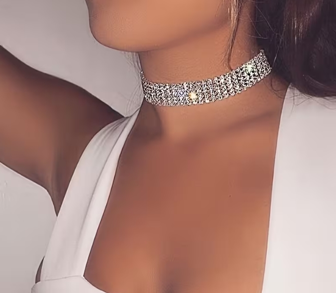 Tento stříbrný štrasový choker je výrazným, ale přesto jemným šperkem, který zvýrazní linii krku a dekoltu. Díky hustě osazeným třpytivým kamínkům působí luxusně a ženský, aniž by byl přehnaný.